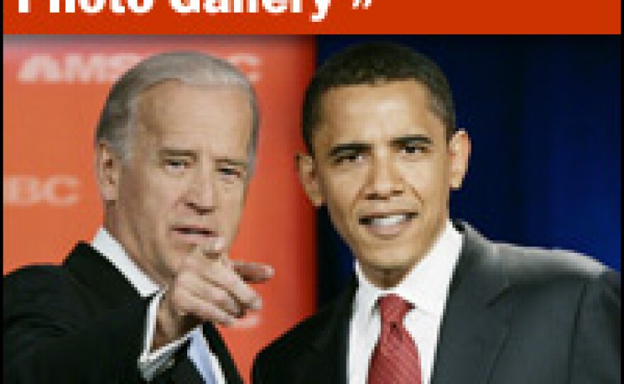 At their first campaign appearance together, in Springfield, Ill., Obama praised Biden as "that rare mix — for decades he has brought change to Washington, but Washington hasn't changed him."