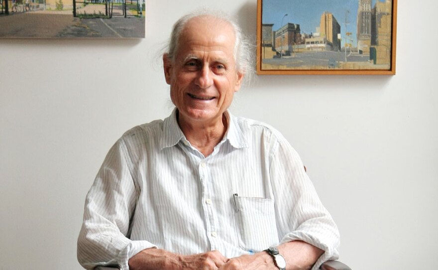 Rackstraw Downes is a painter whose minutely detailed, oil-on-canvas landscapes invite viewers to reconsider the intersection between the natural world and man-made objects. In order to capture the precise details of lighting and weather in his paintings, Downes sometimes spends many months completing a single piece.