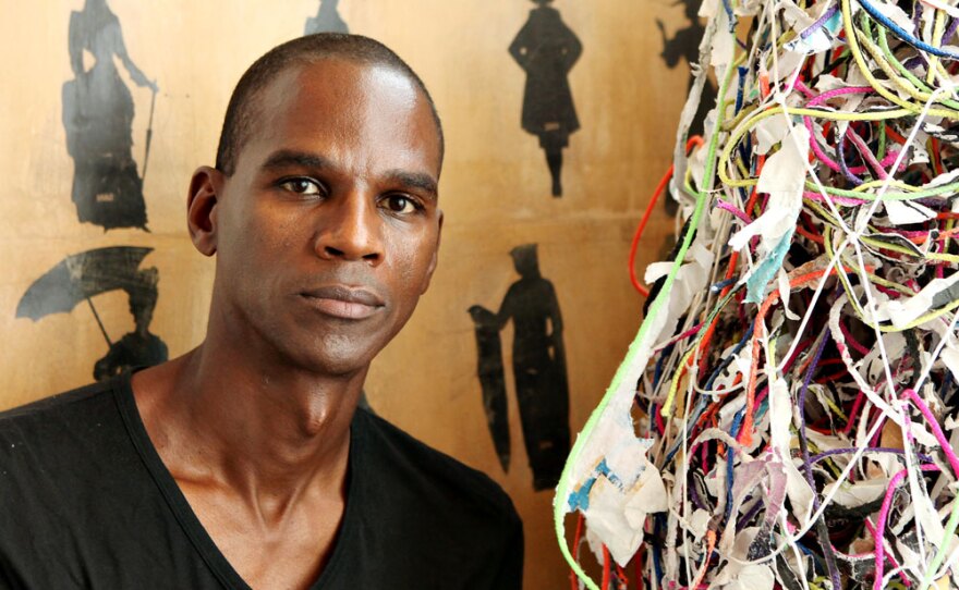 Mark Bradford is an artist whose signature work takes the form of massively scaled, abstract collages that he assembles out of signage and other materials collected, most frequently, from his own neighborhood in south-central Los Angeles.