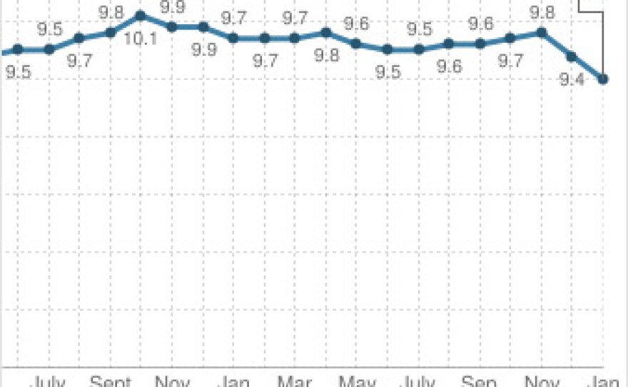 The number of people unemployed fell by more than 600,000 in January to 13.9 million. That's still about double the total that were out of work before the recession began in December 2007.
