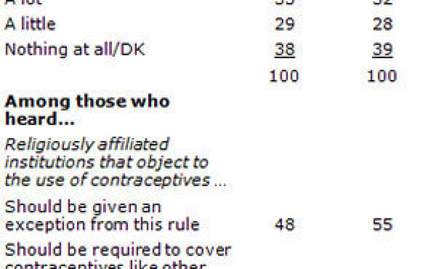 The survey, says Pew's Carroll Doherty, was taken during the time the Obama administration modified its proposal to include most, but not all, institutions affiliated with religious organizations in the coverage mandate.