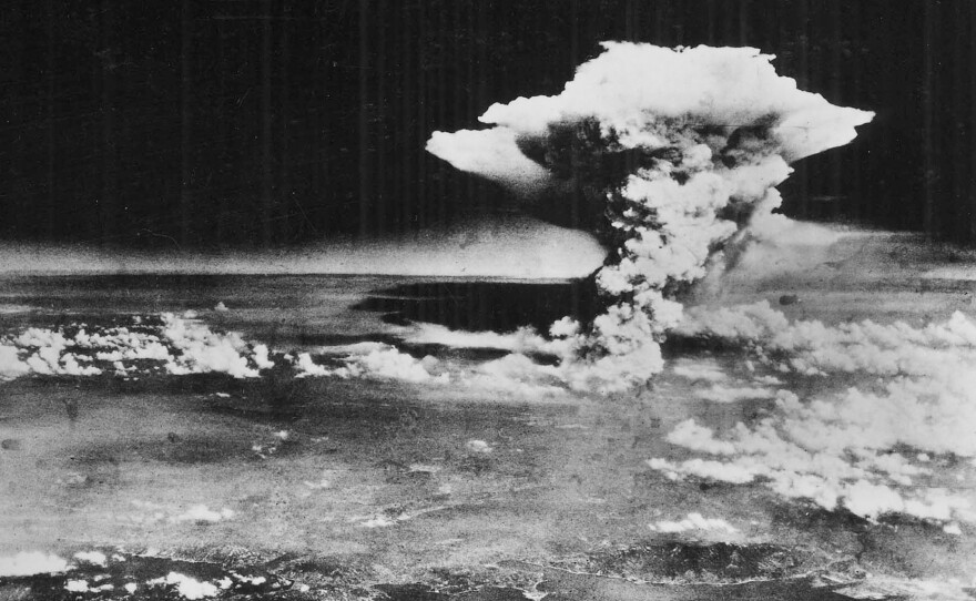 Tsutomu Yamaguchi was late for work. It was August 1945, and he'd just finished designing a 5,000-ton tanker for his company, Mitsubishi. He was heading to the office to finish up, clear out and head home, and that's when he saw the plane, high up in the sky over Hiroshima. He watched it drop a silvery speck into the air, and instinctively, says science writer Sam Kean, "he dove to the ground and covered his eyes and plugged his ears with his thumbs."