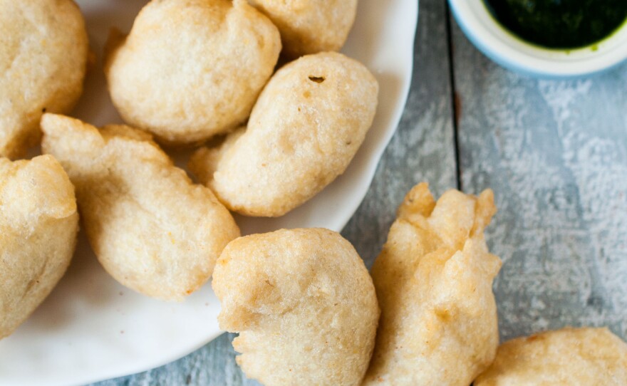 Heat several inches of vegetable oil in a deep heavy saucepan or deep fryer to 375 degrees. Carefully drop the batter, a couple of tablespoons at a time, into the oil. Make sure you do not overcrowd the pan. Fry the balls until golden brown all over, 2 to 3 minutes. Remove with a slotted spoon and drain on paper towels. Let the oil return to temperature between batches. Continue until all the dal is used. Serve hot.