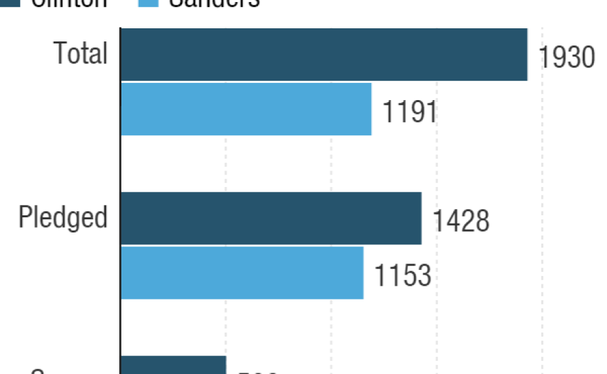 For perspective, that's bigger than where Obama finished over Clinton — 238.5 ahead — with pledged and superdelegates combined. Clinton currently has a 739-delegate lead with pledged and superdelegates.