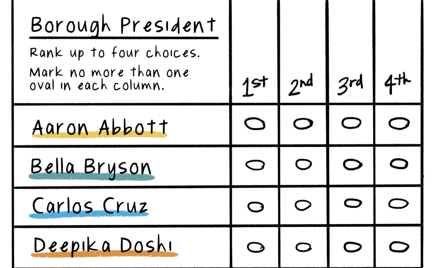 If no one reaches 50% plus one, the candidate in last place is eliminated. Then, the next choice on that candidate's voters' ballots is reallocated and tallied. That process repeats until someone wins a majority. The number of rounds varies based on how many candidates there are and how close the election is.