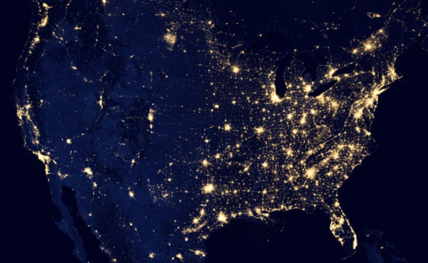 There’s the Nile River bathed in city lights. A map of the United States shows the populated East Coast illuminated. Light from fishing boats can be pinpointed.