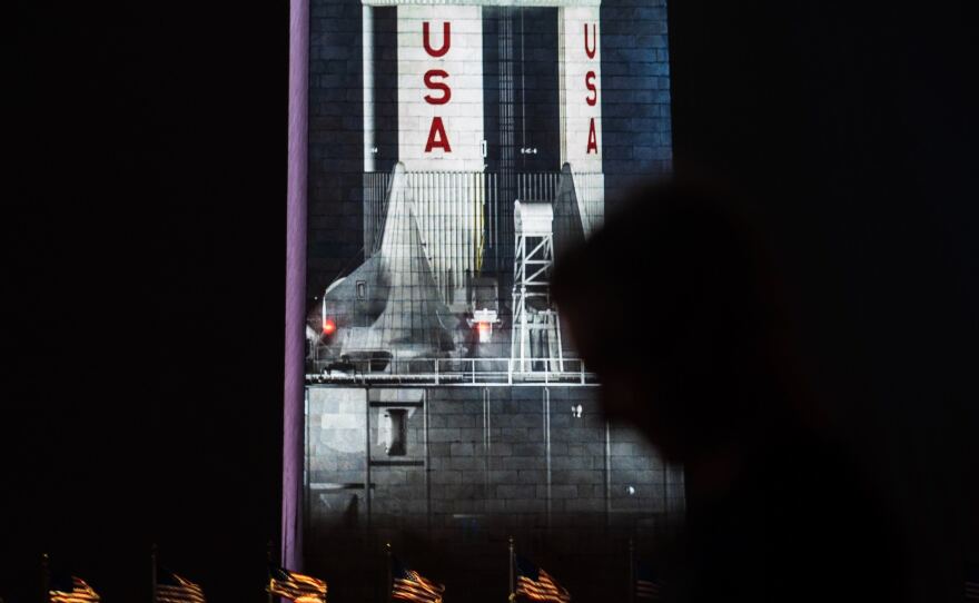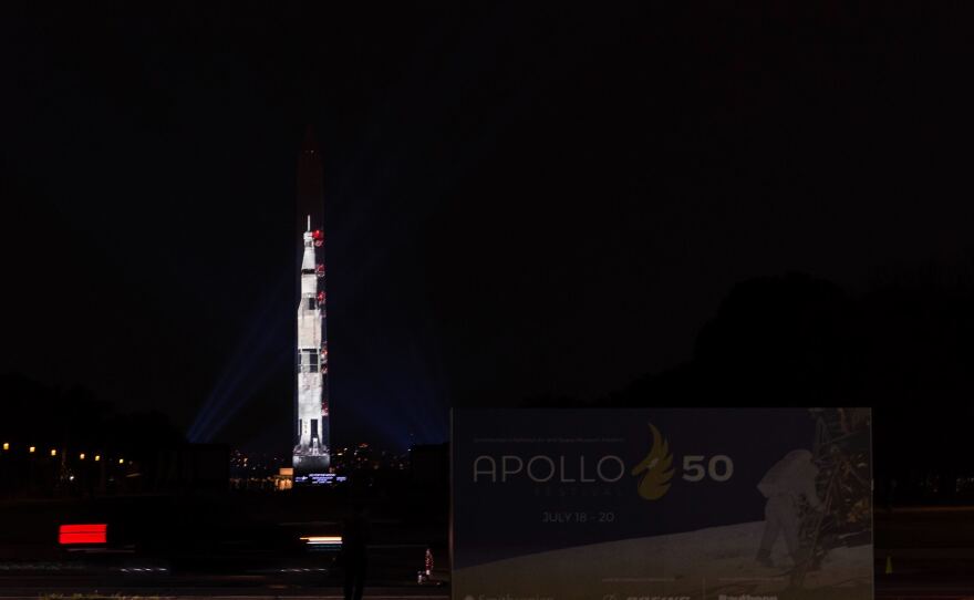 The Smithsonian National Air and Space Museum will celebrate the 50th anniversary of the Apollo 11 moon landing with a life-size projection of the Saturn V rocket on the Washington Monument on Tuesday, Wednesday and Thursday.