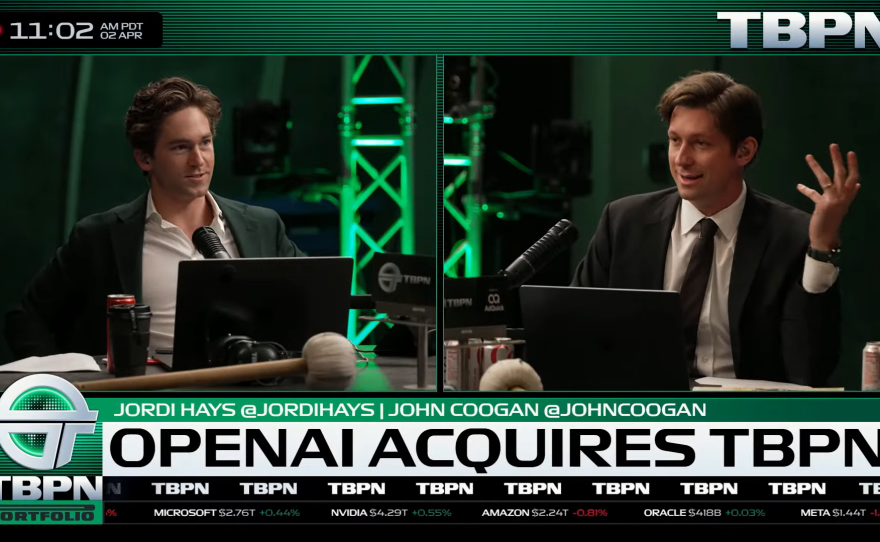 "We have some huge news," Coogan chimed in. "This is from the OpenAI blog: 'OpenAI acquires TBPN, accelerating the global conversation about AI.'" He reassured viewers: "This is real."
