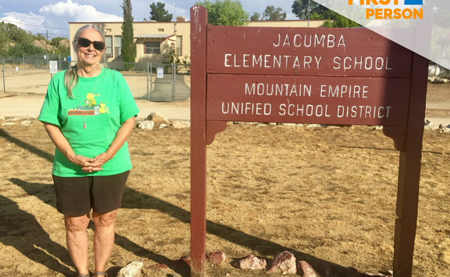 It is time for another installment of our series, 1st period is an -- person. Summer is nearly over and it is almost time to go back to school. The eastern most town, some kids will not return to the hometown school. They will now be bused to a school in a school opened in the 1930s. Long time to come schoolteacher retired in 2003. She is worried about how the change will impact the children.My name is Susan Mary. I was a teacher at Jacumba Middle School for almost 25 years. The thing I like the most about it was that it was small. We knew the kids really well. We knew their families. If they were sick, we could drop off homework. A small school is wonderful that way. You can follow kids. They can tell you when you are getting a kid that was in their class the year before. They can tell you this is how this child learns or you know, be careful about this or whatever. Everybody kind of knows a lot about each child. They really know them. They know their family and their situation. That is wonderful also because in a big school, you do not get that. We averaged between 50 and 60 students. We did take a hit because when they put the border wall up, we had kids from the little village on the other side of the border in Mexico who came across to go to school every day. We lost 13 children that day. Boy, it was a very bad day. Everybody was crying. It was very bad. The only thing that they did to, they did let families live in Jacumba. They rented or stayed in little trailers with five kids. I do not know how they did. It was important to them. They could come over Sunday evening and stay all week and go to school. Then, on Friday after school, they went back over to Mexico. We eventually got all the 13 kids back except for two. The school was a wonderful school. Twice, we had the Olympic torch come through Jacumba and the kids carried the torch and the flag. We could go on field trips. The whole school fit in one bus. We went and there is lots of kids here that could not do that with their families but we took them to SeaWorld. We went to wild animal Park. We went to the zoo. We went on the ferry. We did a lot of things for the kids because we are so far out here and because a lot of people do not have transportation. They never would've had the opportunity. We had the Sheriff who came as Santa for many years. He had flown a helicopter in Vietnam. The first time he came as Santa, he came in a helicopter. [ laughter ] And of course, the next year when he came in a truck, the kids were a little disappointed. [ laughter ] Where is the helicopter, Santa? We just called it our school family. The big kids, the sixth-graders took care of the little ones. The kids put on Halloween carnivals and made tickets and did the booths. It just was a wonderful, wonderful school. To have it just close down, to me, it does not seem like a lot of thought or enough carrying about our community and our kids, to make this drastic closing and moving and all of that. I think the impact will be huge because of the socioeconomic level in our town. It is not as if these people can't just up and move. Also, they might have trouble doing any kind of homeschooling or anything. I cannot imagine what will happen. I really cannot. That will mean that all of the kids in Jacumba are bused somewhere. The little kids are bused to the flat school and a big kids will be bused to Campo. I venture to say that with the stops to pick up kids, they will be on the bus almost an hour, and hour each way. There, we are from our nice little residential school that used to be K-6 and all the kids in town could just walk to school and welcome, we have all of our kids that are being bused. We have an absolutely tiptop afterschool program but now, with no transportation after it, there are very few parents, if any that will be able to drive every day from Jacumba to Campo to pick their children up from the afterschool program. There is nothing for children to do here. Now, they will be in town when they get home and get off the bus. Now what? That worries me a lot. They have nothing to do.That was Susan Barry, a schoolteacher. That was produced by Brooke Ruth.