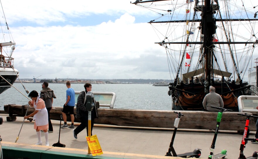 Think about this for a second: How often do you stop to have a conversation or even to say hello to the people who clean your home or office? Some people do make an effort to connect and say hi. But a lot of folks avoid eye contact and say nothing at all. The interaction can feel awkward. Because in those moments, privilege, power and class are right there on display. Claudia Cleaning Second Clip 1 [05:18 - 5:27] Claudia: It's uncomfortable to look at ….. To be aware of somebody else cleaning your, your dirt. That’s Claudia Cano. She’s all about making people feel uncomfortable. She’s a performance artist who created an alter ego -- a cleaning lady named Rosa Hernandez. Rosa fits all the stereotypes - she’s Latina, speaks only Spanish and wears a light pink maid’s uniform with a white apron. She’s rarely seen without a broom or a rag. And instead of cleaning homes or offices, Rosa cleans public parks, art galleries and libraries. She’s literally swept a pier in Oceanside, mopped an art gallery in Los Angeles and cleaned a picnic area at a park at the border fence. Claudia invented Rosa after she had a hard time transitioning from her life in Mexico to life in the U.S. She eventually found her way here as a contemporary artist with a graduate degree in fine arts. But she thinks too many Latina immigrants like her are too often ending up as childcare providers or housekeepers. Rosa is Claudia’s way of tackling that thorny topic. Claudia hopes Rosa makes people stop and think about their relationship with the women they pay to clean up after them. She wants people to consider these women’s lives and personal struggles -- even if just for a minute. I’m Alan Lilienthal, and you’re listening to Only Here, a KPBS podcast about the place where San Diego and Tijuana meet. Today, KPBS podcast producer Kinsee Morlan has a story about one artist’s effort to bring attention to the lives of thousands of immigrant women cleaning homes here in the U.S., plus the artist’s own search for a real-life identity along the way. Only here can you find an artist who dresses up as a “cleaning lady” to create a conversation. More after the break. ad With her cleaning lady alter ego, San Diego artist Claudia Cano wants to start a conversation about racial and gender disparities experienced by Latina domestic workers in California. The maid costume she wears when she performs as Rosa -- she sees it as a visual symbol of oppression and sexism. Here’s KPBS’ Kinsee Morlan with the story. When Claudia Cano puts on her maid uniform and heads out to perform in public places, she becomes Rosa Hernandez. Seriously, for the duration of her performance, she speaks only spanish, keeps her head down and focuses only on cleaning up any messes she comes across. When she’s performing as Rosa outdoors, it’s more of a spectacle because she’s just soooo out of place. Some people get curious and ask her questions, but she refuses to break character. She maintains her persona as a very submissive cleaner who’s too busy cleaning to talk. Most people who see her are unaware that Rosa isn’t a real quote on quote ‘cleaning lady.’ Rosa is actually a work of art. [nat sounds from Embarcadero performance]? At a recent performance at the embarcadero in downtown San Diego, Claudia, performing as Rosa, went to work sweeping a stretch of sidewalk that winds alongside the San Diego Bay. Two teenagers on their iphones mechanically lifted their feet when Rosa signaled that she wanted to sweep under the bench they were sitting on. Claudia Reaction Tape Clip TK (04:50 - 5:08) Did you think that that was strange to have a lady sweeping up here? I just like accepted. I was like, I like, like she's doing something good. Like okay. Yeah, exactly. And the outfit helped. I was like, okay, sweet. Exactly. Like the teens, some people were pretty baffled by Rosa’s presence. Claudia Reaction Tape Clip TK (06:52 - 7:26) I was just wondering if I could get your thoughts on the cleaning lady right there. I have no, I was just looking at her. I have no idea who she is and what she's doing. What do you think? Say what is your best guess? Well she, I really, I'm gobsmacked. I really don't know. I was going to go ask them at first I thought she might be connected to the ambulance, but I don't really know if she is. She want people to come up and ask her if she's a maid. I don't know. I don't know. I'm so sorry. When Rosa performs in galleries, it’s a little less of a spectacle. People often think she’s an actual janitorial employee. And that’s key, actually, since she uses her art project as a way to examine the social interactions between a Latina immigrant and a mainly white audience. Sometimes the way people treat Rosa can be pretty terrible. At a performance at a museum in Los Angeles, Rosa told a woman to be careful of the wet floors. She said it in Spanish and the woman yelled at her, saying she didn’t understand what Rosa was saying and that she should learn how to speak English and get out of the way. And that was just one of the negative reactions that night. Claudia Cleaning Lady First (04:27) Claudia: at the same performance there were women complaining at the front desk. Why was that lady mopping the floor? It was a hazard in someone was going to cover next event. So yeah, it's, it's, uh, the, those moments that I'm, I'm waiting to trigger the real character of the people and they're like very few instances. But for me that's gratifying. [nat sounds from Embarcadero performance]? Back at Rosa’s recent appearance along the bay, most people actually straight-up ignored or just didn’t notice her. Claudia Reaction Tape Clip TK (12:48 - 12:53) there's people cleaning up all the time and you just, they're kind of part of this, the environment in some ways, Lots of people walked right past her without saying a word. Claudia says that’s what happens at most Rosa performances -- she says people even 