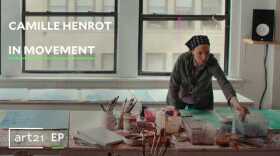 Premieres Wednesday, April 22, 2026 / Art21's YT channel and art21.org. As she grinds pigments, sifts through references, and applies gestural strokes across multiple canvases in succession, artist Camille Henrot embraces speed and openness in her painting practice, leaving room for possibility.